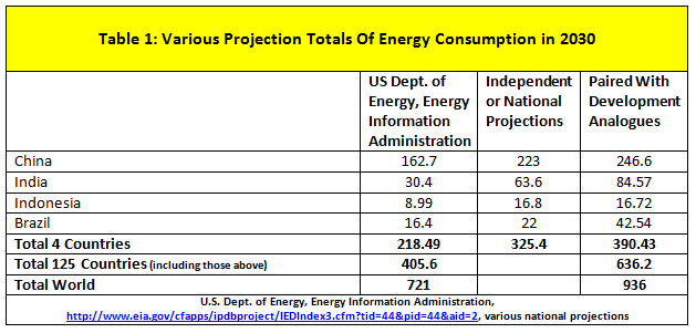 What does it mean to the world if we discover that developing countries may use 57% more energy in 20 years than previously calculated? Or that the world as a whole may use 30% more energy in 2030 than we are planning for now?